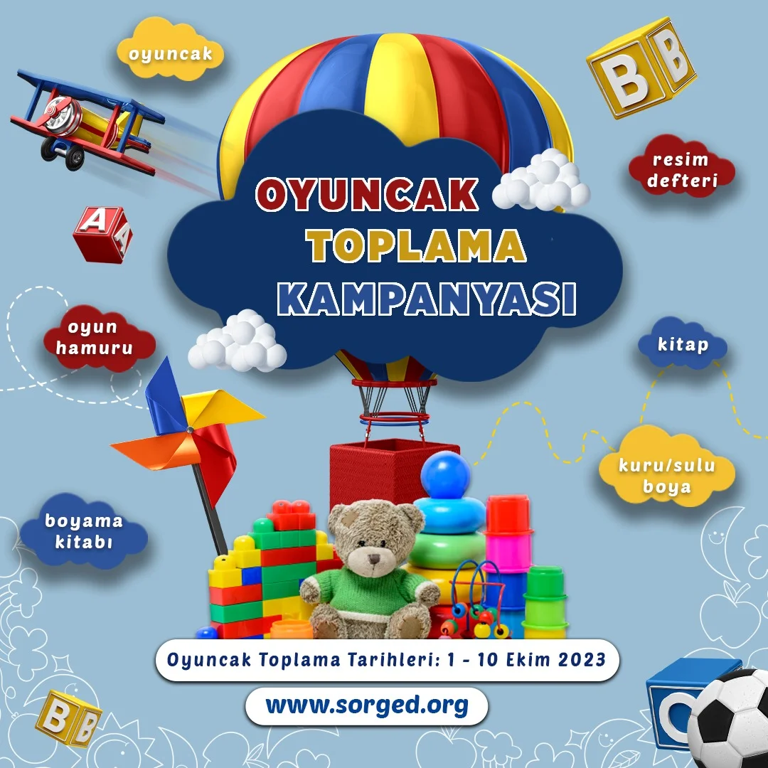 Sorgun Gençlik Derneği tarafından köyde yaşayan çocuklarımız için 1-10 Ekim 2023 tarihleri arasında oyuncak toplama kampanyası düzenlenecek.